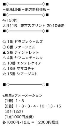 競馬LINEは2番人気の1番ドラゴンウェルズを本命に