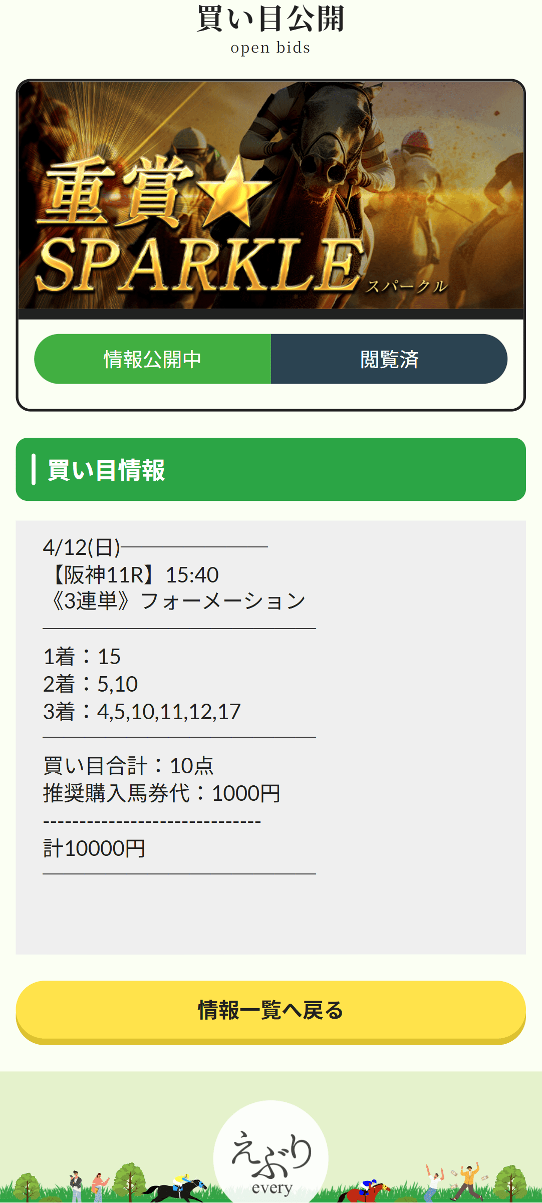 O2B3031さん夫に内緒で競馬を楽しんでる身としては、GⅠってやっぱり特別なんです。どうせ当たらないだろうなと思いながらも、えぶりの重賞★スパークルだけは気になって、4月12日の桜花賞を買ってみました。