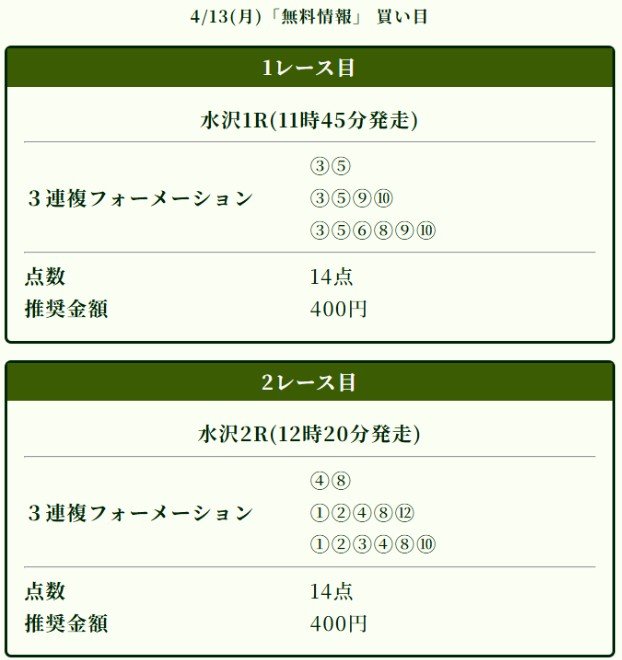 口コミ見てたら三連単を無料予想で当てたサイトもあったけど