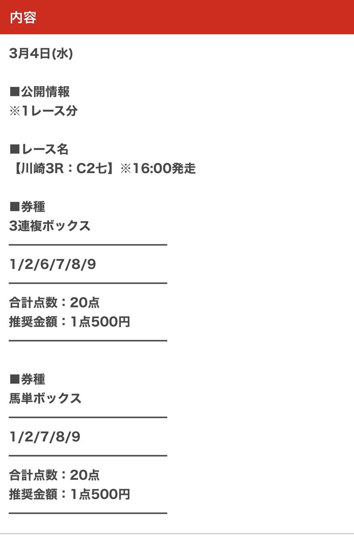 3月4日(水)の地方競馬無料予想オススメと言って紹介してくれた