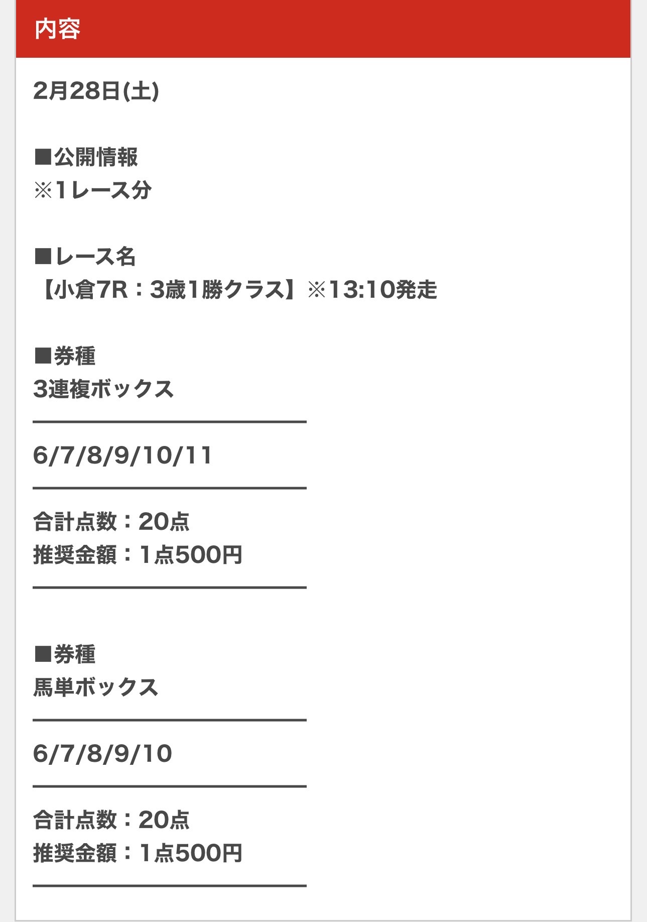 2月最終日の28日(土)の無料予想で