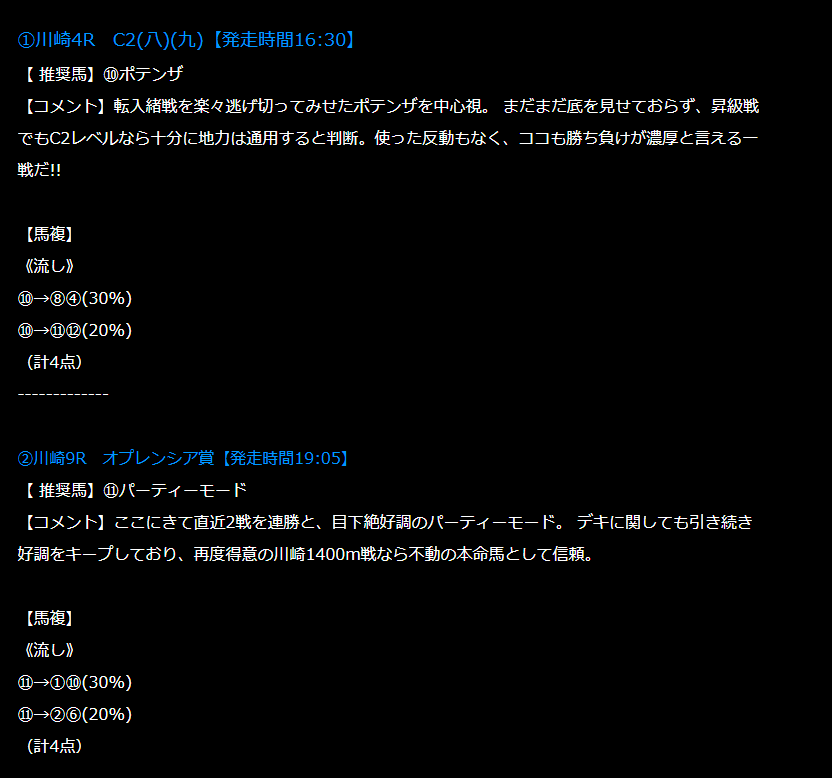 両レースとも選定した軸馬が1着