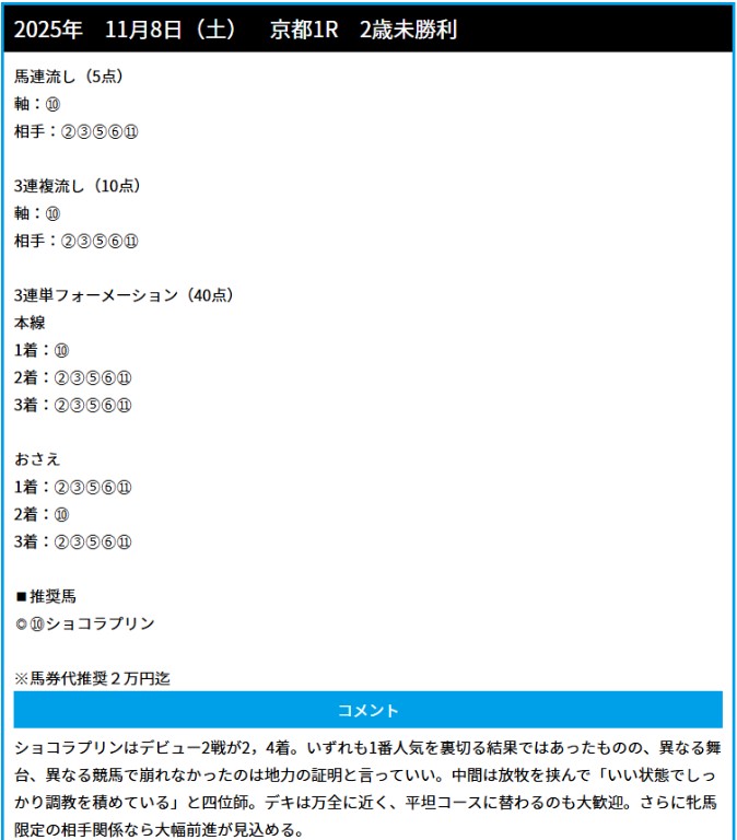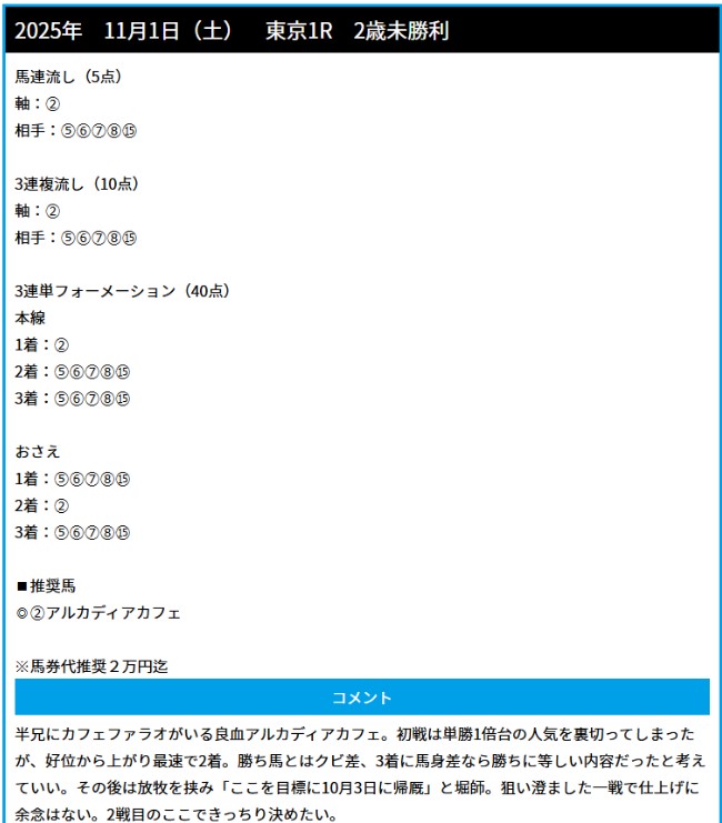 11月1日(土)JRA無料予想東京1R的中