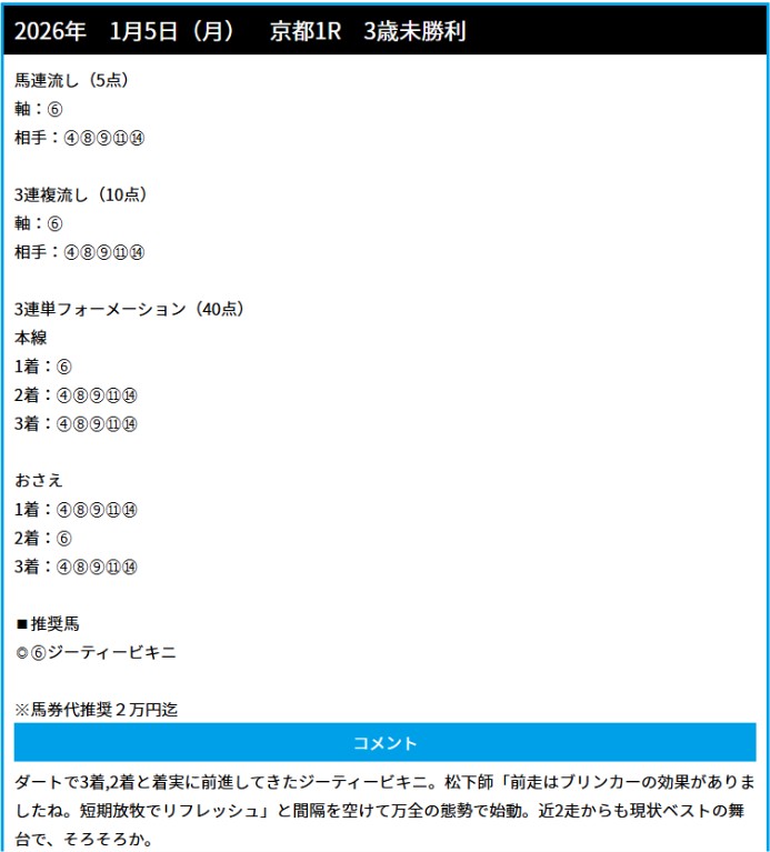 2026年最初の中央競馬無料予想で5日(月)的中を届けてもらいました!